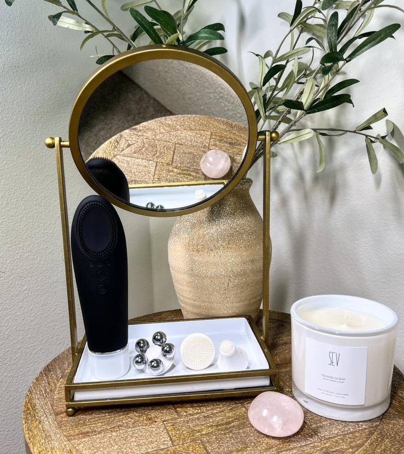 - Tiefenwirkender Massagekopf – Regt die Durchblutung an und hilft, Pflegeprodukte tiefer in die Haut einzuschleusen – für ein strahlendes und festes Hautbild.
